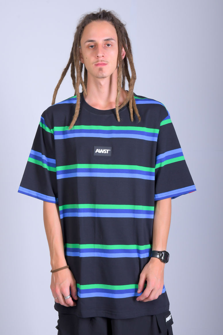 Awst Tee Shirt Striped Blue , Green and black